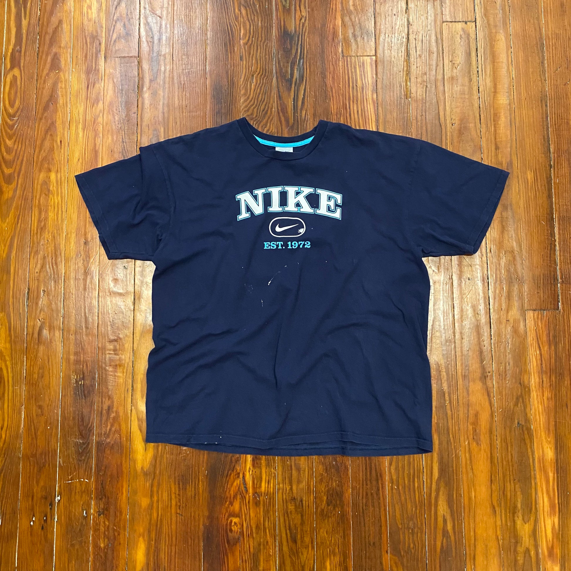 Vintage Nike Center Logo Spell Out Navy Tee - 2XL
